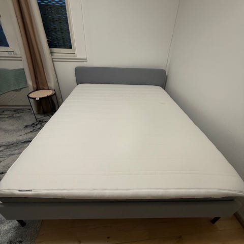 Grå seng som måler 160x200 sælges da jeg har købt en større seng. Stoffet er i god stand og der er ikke pletter eller lignende. Kommer fra et røgfrit og dyrefrit hjem.