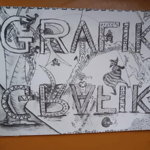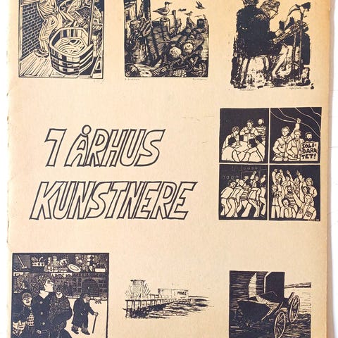 I slutningen af 1970'erne slog 7 billedkunstnere fra Århus sig sammen og udgav i hvert fald to mapper med et værk fra hver. Alle tilhørte venstrefløjen, så flere af billederne har også en politisk dimension. Denne udgave er fra 1977 og i mappen ligger der arbejder af Karsten Holm, Thomas Kruse, Hans Ludvig Larsen, Peter Peitersen, Kirsten Ruth, Poul Steffensen og Mette Stærk. I de fleste tilfælde er der tale om to eksemplarer. Bladstørrelse 29x41. Kan ses i Århus.