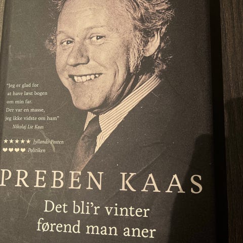 Preben Kaas Det bli’r vinter førend man aner bog. Biografisk værk skrevet af Jakob Steen Olsen og Rikke Rottensten, udgivet på People’sPress. Bogen beskriver skuespilleren Preben Kaas’ liv og karriere og indeholder tekst på dansk. Indbundet udgave med omslag i sort/hvidt design med portrætfoto på forsiden og tekst på bagsiden.