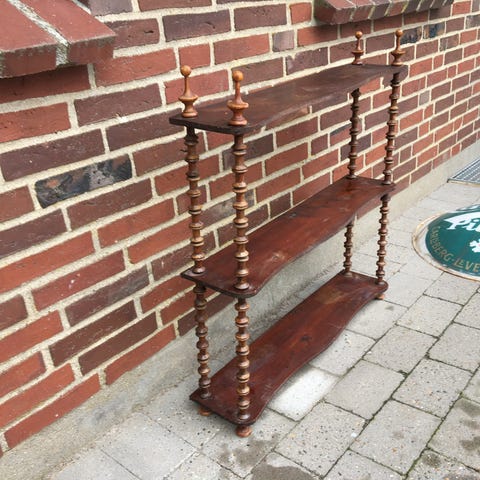 Gammel reol i metal med flere små rum, velegnet til opbevaring og sortering af mindre genstande. Reolen har en høj, smal form og er opdelt i mange fag, som kan bruges til fx værkstedsudstyr, hobbyartikler eller andre ting, der ønskes organiseret. Overdelen har en kant, som kan fungere som ekstra opbevaringsflade. Den har masser af lækker patina, og kan bruges til både frø, og søm og skruer m.m
