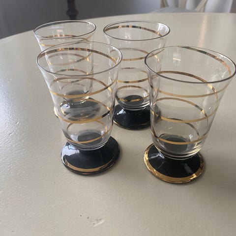 &Tradition kande og glas sæt i klart glas med gulddekoration. Sættet består af 2 kander og flere drikkeglas, alle i gennemsigtigt glas med matchende guldfarvet mønster og kant der er også små underkopper 5 stykker . Egnet til servering af kolde drikke ved borddækning eller til hverdag og gæster.