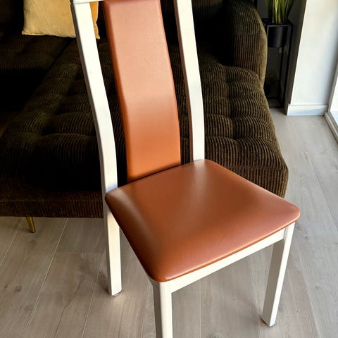 Sædet i klassisk sort læder giver et stilrent udtryk og er rart at sidde i. De smukke ben i matlakeret massiv eg tilføjer et moderne touch, mens de samtidig sikrer stabilitet. Med en siddehøjde på 45 cm passer den perfekt til de fleste spiseborde.