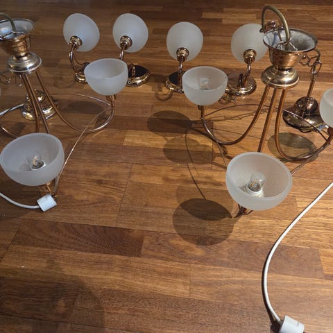 Sæt af forskellige lamper i varierende materialer og størrelser. Indeholder metal- og glasdele, med forskellige monteringsmuligheder. Passer til diverse belysningsformål i hjemmet eller arbejdsrum. Strømforsynes via ledning.