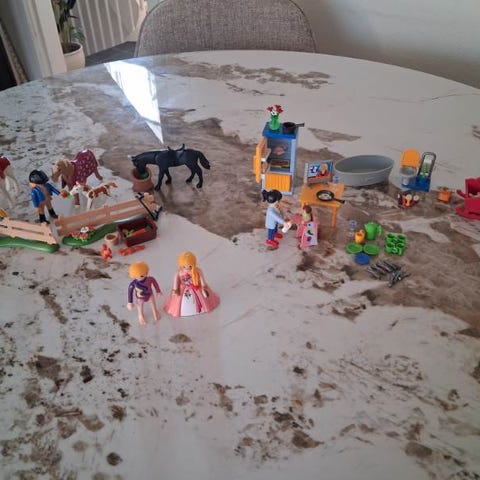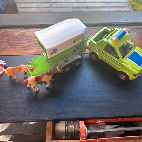 Der medfølger også en vogn til dyrene, hvor der mangler flere dele, samt indhegning til dyrene.