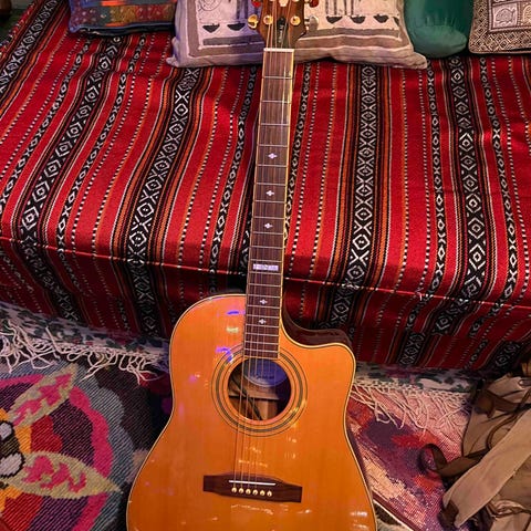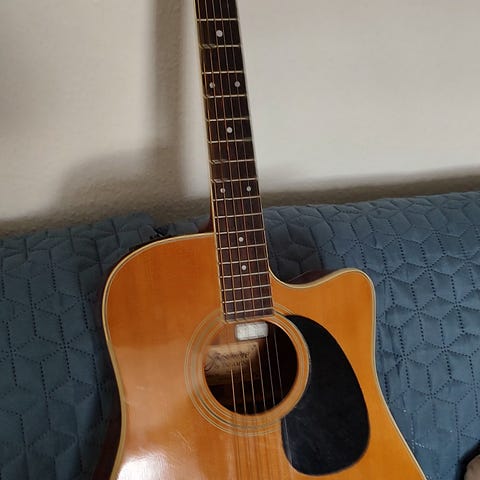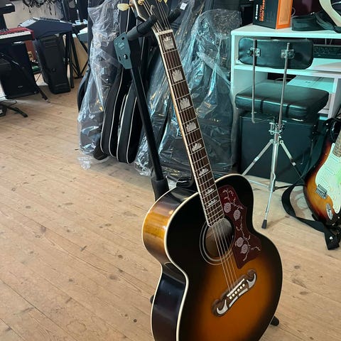 Epiphone EJ-200 Artist akustisk guitar i naturfarvet finish. Jumbo-krop med stålstrenge og klassisk rund lydhulskonstruktion. Hals med gribebræt markeret med dot-inlays. Mekanikker i metal med lyse knopper. Velegnet til både akkordspil og fingerspil i forskellige musikgenrer. Den har boet i min stue og har pt sprunget den nederste streng, men ellers er den i fin form og ingen problemer:-)