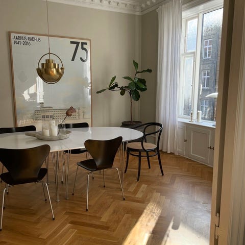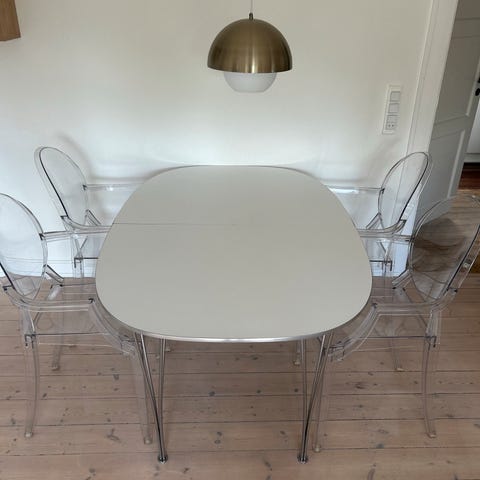 Spisebord i massivt træ. Vejer cirka 20kg. Der følger bordben med, der 1:1 ligner Piet Hein Ellipse bordben.