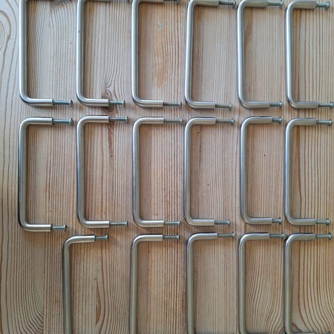 Alle ens størrelse med hul-mål 12,7 cm. - Skruer medfølger.