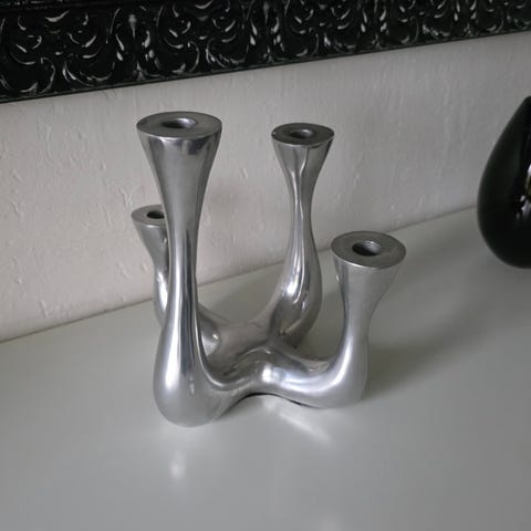 Lysestage i træ med sort farve i der hvor lyset skal sættes.