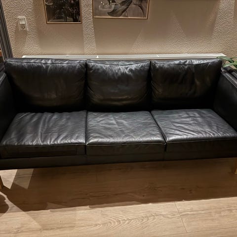 3 personers sort lædersofa med tremmegavle