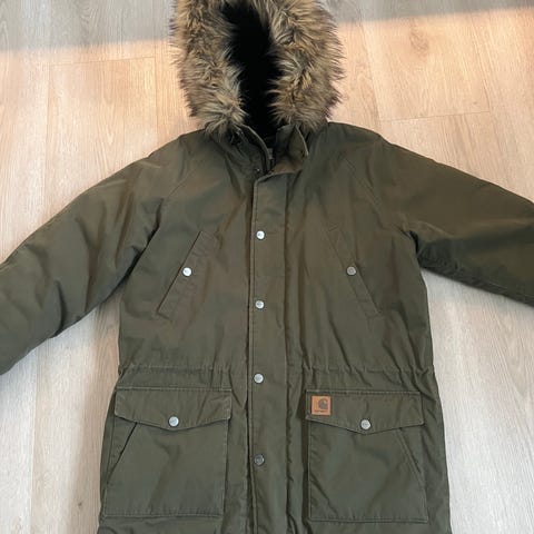 Le Baiser vinterjakke til herre i størrelse S. Jakken er grøn og fyldt med dun. Den har hætte, gennemgående lynlås foran og flere lynlåslommer på fronten. Modellen er quiltet for jævn fordeling af dunfyldet. Velegnet som varm overtøjsjakke i den kolde sæson.