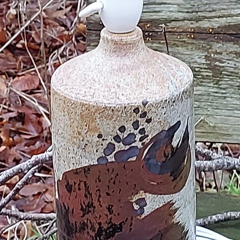 Superflot bordlampe samt skål / potte designet og udført af keramiker Conny Walter