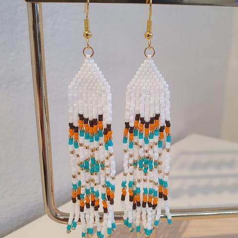 Håndsyet smykker, syet med små japanske perler, Miyuki Delica og Toho seed beads.