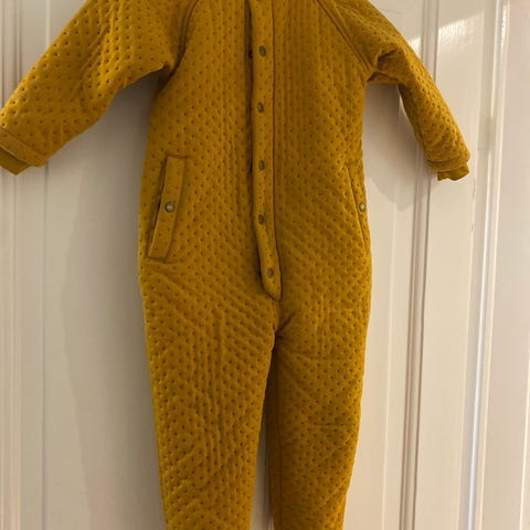 Konges Sløjd flyverdragt i str. 86 til unisex. Dragten er grå og fremstillet i nylon med quiltet struktur. Den har lange ærmer og lange ben, samt gennemgående lynlås foran for nem af- og påklædning. Egnet som yderlag til køligere vejr, f.eks. til brug i barnevogn, på legeplads eller på tur udendørs.