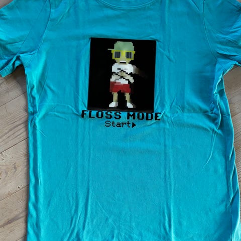 Kortærmet T-shirt med hjerter. Kan hentes nær Storcenter Nord, Aarhus, eller i Randers. Kan også sendes.
