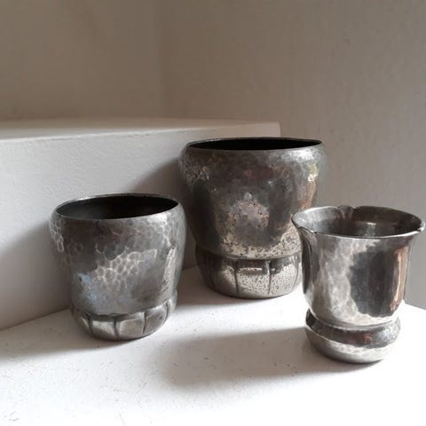 Retro tin vase- fad- kande - lille “skål”- 2 bægre