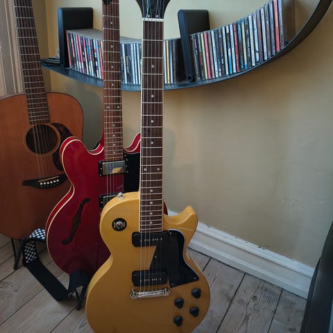 Vil godt bytte med en Epiphone Black Beauty 3 humbucker