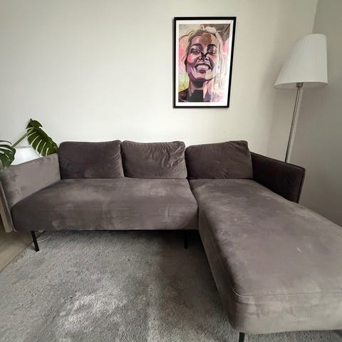 Velholdt sofa med chaiselong med god opbevaringsplads. Sofaen er brugt meget lidt.