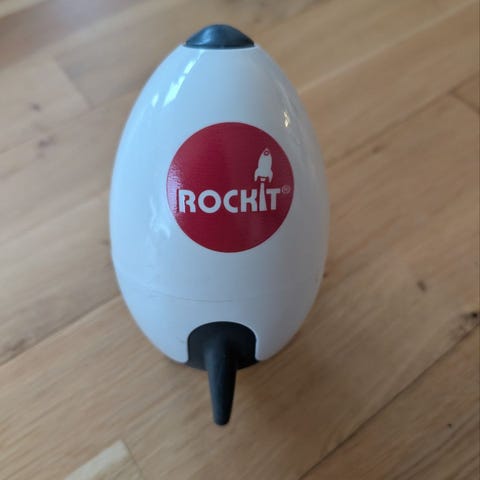 Rockit Baby Rocker barnevognsvugger i hvid. Enheden monteres på barnevognens eller klapvognens stel med den medfølgende holder og giver en blid vuggende bevægelse. Produktet er batteridrevet og designet til brug udendørs og indendørs, afhængigt af vognens placering. Velegnet til at skabe jævn bevægelse, når barnevognen står stille. Farve: hvid med sort fod.