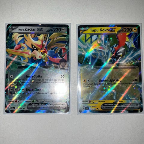 Pokémon kort samling med Zapdos EX, Zeraora V og Pikachu