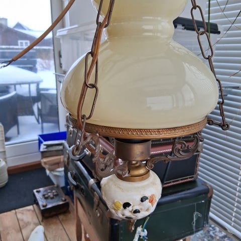 Højde 18 cm. Diameter 20 cm. Diameter fatning : 7 cm.