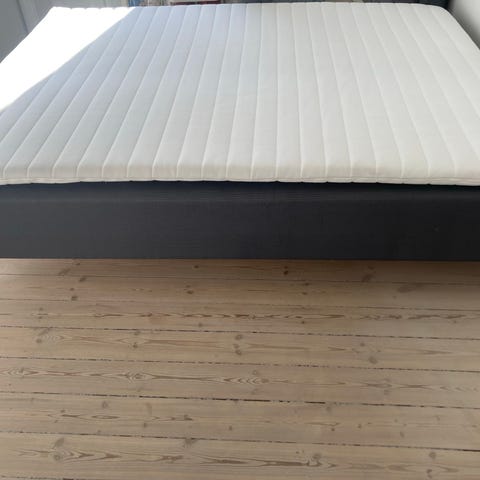 To boxmadrasser, hver 90x200 cm, fra Drømmeland. Ben 24 cm. Står meget fint. Nypris med ben omkring 10.000 kr.