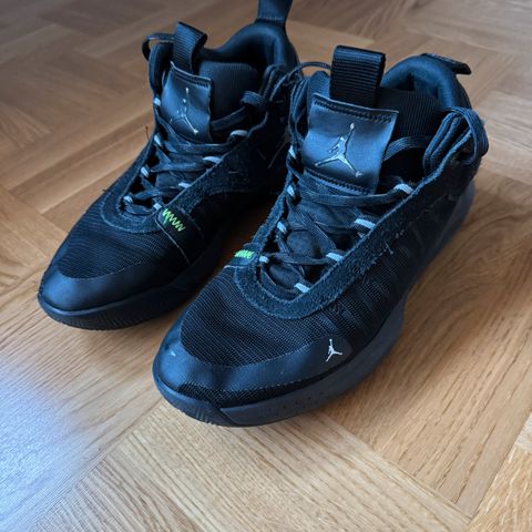 Jordan Max Aura 3 sneakers i str. 42 (EU), US 8.5. Farvekombination i hvid, mørkegrå og turkis. Overdel i syntetisk materiale og tekstil med snørelukning. Polstret kant og pløs for komfort. Mellemsål med synlig Air-enhed i hælen. Ydersål i gummi med mønster for greb. Velegnet som hverdagssko eller til sport/indendørsaktiviteter.