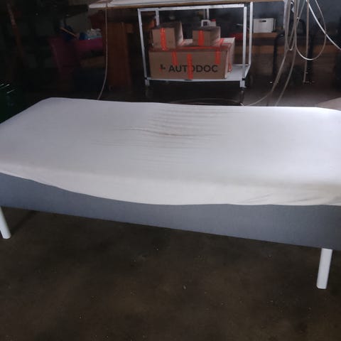 Sælger en pæn og velholdt boksmadras med stålben. Madrassen er komfortabel og stabil og egner sig perfekt som enkeltseng til soveværelse, gæsteværelse eller ungdomsværelse.