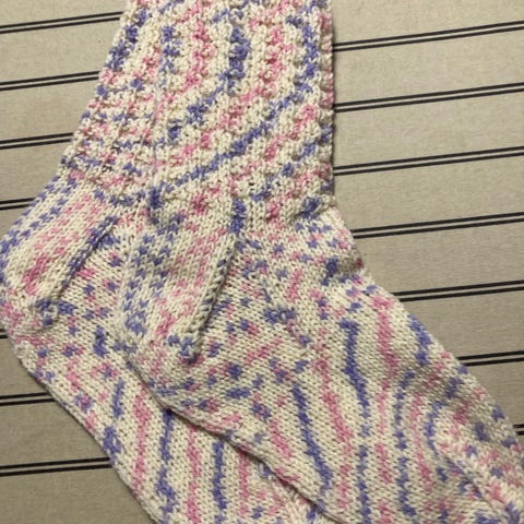 Hjemmestrikkede sokker af 75 % uld og 25 % nylon.