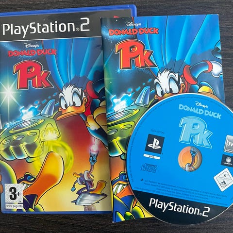 Disney Donald Duck PK PlayStation 2 spil. Actionplatformspil til PlayStation 2 med Anders And som superhelten PK. Fysisk udgave i plastcover med trykt omslag og spil-disk til PS2-konsol. Velegnet til spillere, der ønsker et tegneserieinspireret eventyrspil i Disney-universet på PlayStation 2.