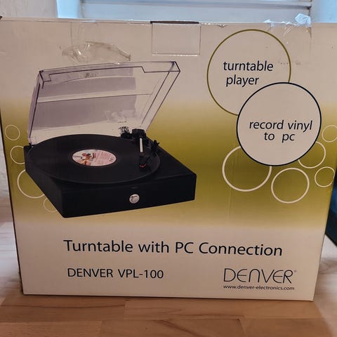 Denver pladespiller i sort med indbyggede højttalere. Pladespilleren har manuel tonearm og frontbetjening med tænd/sluk-knap og volumenregulering. Der er hovedtelefonudgang på fronten. Enheden har gennemsigtigt låg til beskyttelse af pladetallerken og pickup, samt kompakt kabinet med indbyggede runde højttalere i toppladen. Egnet til afspilning af vinylplader i hjemmet via de indbyggede højttalere eller hovedtelefoner.