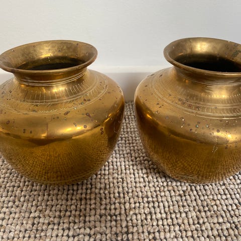 Stort krus af messing. 16,5 cm højt. Ingen indgraveringer og alder ukendt.