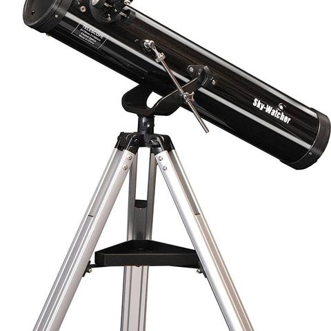 Sky-Watcher teleskop med spejldiameter på 76 mm og brændvidde på 700 mm. Teleskopet er sort og monteret på et justerbart stativ i metal. Det har søgerkikkert monteret på røret samt fokuseringsenhed til okularer. Egnet til observation af månen, planeter og andre himmelobjekter fra f.eks. have eller altan.