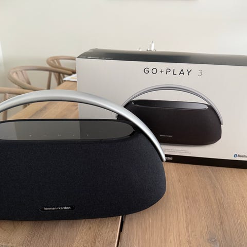 Harman Kardon Go + Play trådløs højttaler i sort. Bærbar Bluetooth-højttaler med integreret bærehåndtag og stofbeklædt front. Velegnet til musikafspilning i hjemmet eller på farten. Understøtter trådløs tilslutning fra kompatible enheder som smartphone, tablet og computer. Kan bruges både til daglig lytning, baggrundsmusik og højere lydniveauer ved sociale sammenkomster.