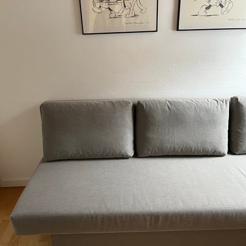 Rigtig lækker sovesofa med stort rum nedenunder til dyne og hovedpude.