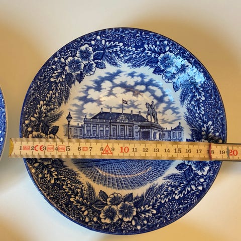 4 tallerkener med en diameter på 24,5 cm. En enkelt har en reparation.