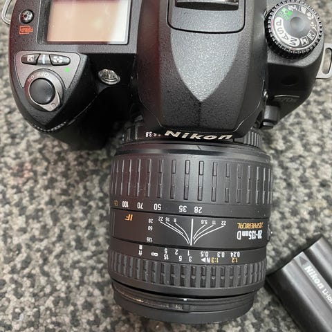 Kamera med AFS Nikkor 55-200mm, fra dødsbo sælges uden oplader. Taske medfølger.