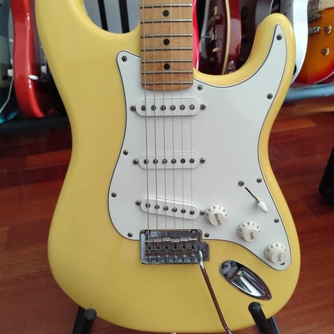 Der hører lidt historie til guitaren. Neckplate er ikke den originale. Ham der solgte den til mig troede det var en gammel guitar pga den. Men en eller anden i salgskæden har prøvet at sælge den som værende en gammel guitar ved at montere den med et gammel serienummer og samtidig fjerne det rigtige serienummer på bagsiden af hovedet. Jeg var dog klar over dette med det samme. Og ved at skille guitar ad så viser stempler og mærker da også at det er en Road Worn. Forcen sikkerheds skyld har jeg sendt Fender billeder af den adskilte guitar og de er enige med mig. Jeg har billeder og mail en seriøs køber kan se.