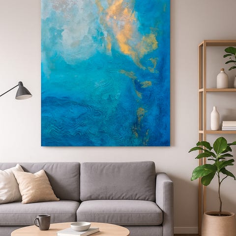 Jeg skaber abstrakte malerier inspireret af naturen, hvor jeg anvender sand fra danske strande for at tilføje en unik struktur.