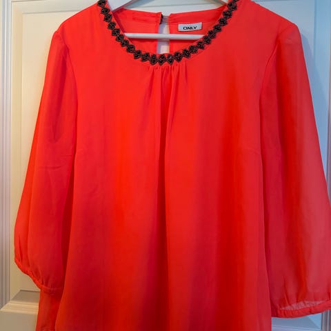 ONLY bluse i beige, størrelse L. Denne bluse er designet til kvinder og har et klassisk snit, der passer til mange lejligheder. Fremstillet af let materiale, hvilket gør den behagelig at bære.