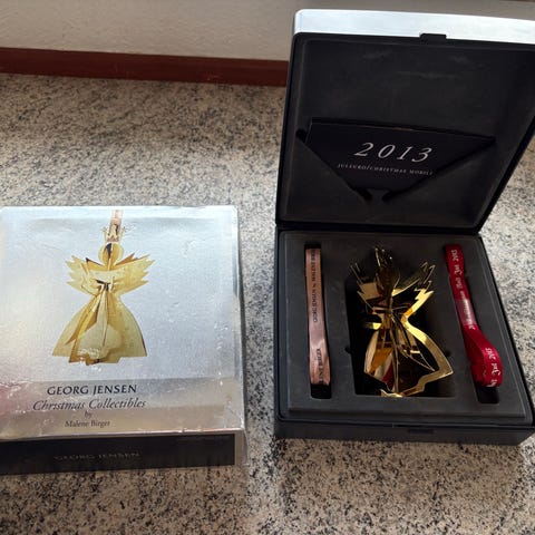 Christmas Collectibles – En ny juletradition hvert år Georg Jensens Christmas Collectibles er en elsket samleserie, der siden 1984 har tilføjet glimtende poesi til juletiden. Hvert år inviterer en ny designer indenfor med sit bud på julens symboler – skabt i messing og forgyldt eller sølvbelagt med smukt bånd. Serien forener klassisk julehygge med tidløst håndværk og bliver med årene en helt personlig del af familiens julepynt.
