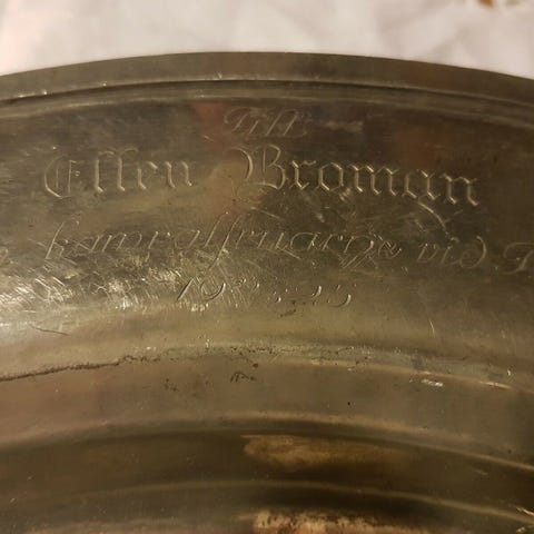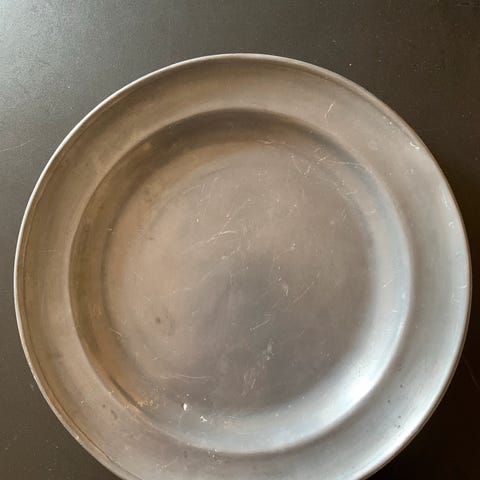 Tin fad fra 1838, Tin, 185 år gl., Meget flot tinfad med to ører, tre stempler