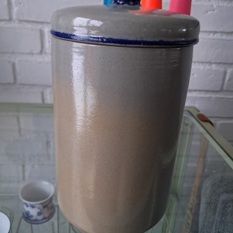 Så dejligt at finde så fin en antik lågkrukke MED låg! 11 cm høj og 7 cm i diameter - og med det fineste skønvirke-reliefmønster🤎
