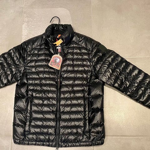 Parajumpers letvægts dunjakke til herre i størrelse L. Jakken er grøn og fyldt med dun, hvilket giver en let og isolerende yderjakke. Den har gennemgående lynlås foran og quiltet design med vandrette syninger. Jakken har høj krave og karakteristiske Parajumpers-detaljer ved halsen samt logo-patch på ærmet. Velegnet som overgangsjakke eller som varmende lag på køligere dage.