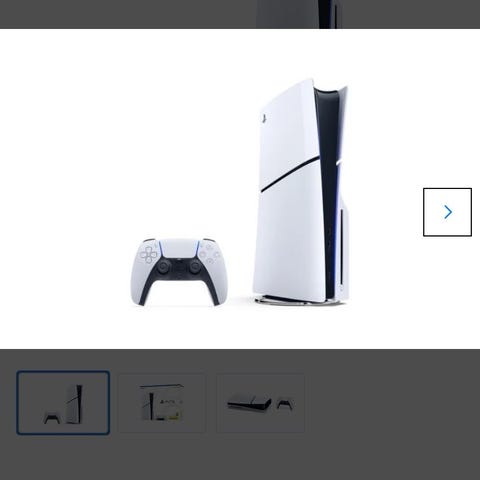 Sony PlayStation 5 slim i hvid. Konsollen ses på billederne sammen med original emballage. Der medfølger en hvid DualSense controller samt kabler, herunder strøm- og HDMI-Kablerne. Egnet til spil, streaming og andre PlayStation 5-kompatible medier og tjenester. Alle specifikationer som lagerplads, modelvariant og øvrige tekniske detaljer følger standarden for PlayStation 5.