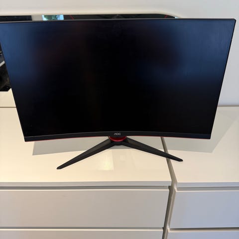 AOC C27G4ZXE skærm på 27". Skærmen er en buet model fra AOC Gaming-serien, egnet til brug med pc eller konsol. Ifølge emballagen understøtter modellen høj opdateringshastighed, lav responstid, HDR og Adaptive Sync samt tilslutning via HDMI. Velegnet til generel computerbrug og spil, hvor en større, buet skærm ønskes. Der kommer både DP Kabel og hdmi kabel med