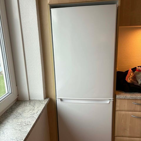 Købt 1/12 2025 og brugt 6,5 uge. Står som nyt, undtagen lille bule på køleskabslågen (måler ca. 1cm. Det er ikke lykkedes mig at få et billede af denne.)