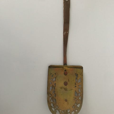 Skeerne er 26,5 cm lange, udført i kobber og træ, de har et sødt håndslået mønster med blomsterdekorationer. De har været brugt som husholdnings- eller bryggeredskaber. Disse skeer blev typisk brugt til at lave saft, syltning eller mad samt servering.