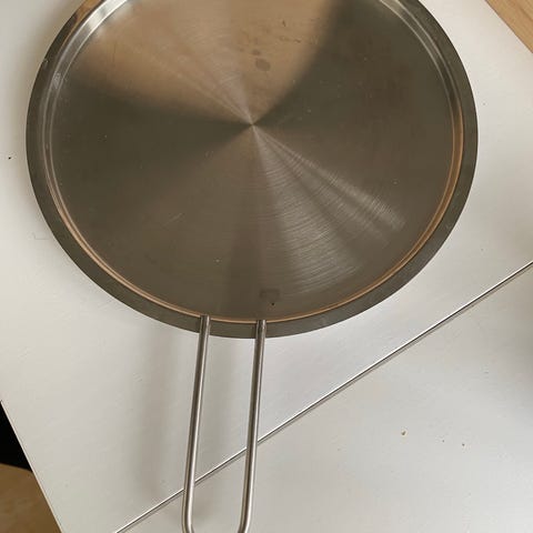Eva Solo Eva Trio låg i rustfrit stål. Låget er udført i metal og passer til Eva Trio gryder i serien, som vist på emballagen. Velegnet som standardlåg til madlavning på komfur. Neutral, blank ståloverflade med håndtag på toppen.