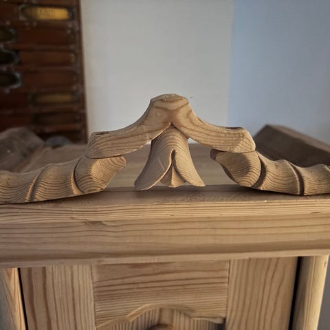 På grund af flytning sælger vi et lyst træskab med tre skuffer Skabet er velholdt, men skal lidt støvsuges inde i skufferne