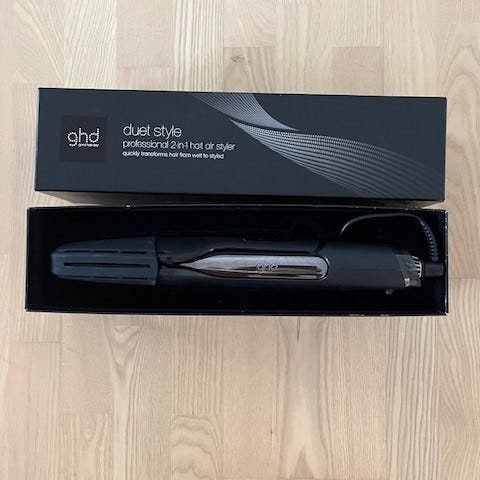 Oplev fremtidens hårstyling med ghd Duet Blowdry, en revolutionerende 2-i-1 hårtørrerbørste, der forvandler dit hår fra vådt til føntørret, glat og glansfuldt, helt uden varmeskader. Børsten kommer i original emballage.